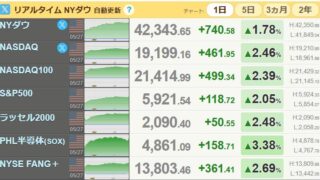アメリカと中国の関税90日間引き下げ合意でアメリカ株が急騰している。両国ともつらいのだから、すこし休戦という事だと思う。株価もダウは2.8%、ナスダックは4%、s&p500は3.3%と大幅高だ。今日の日本市場も先物が1100円上げており39...